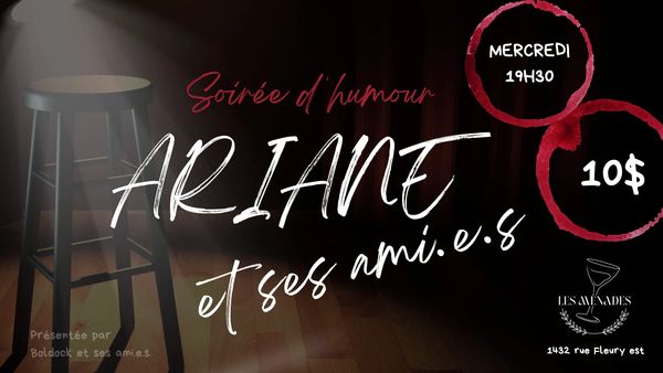 Ariane et ses ami.e.s prend la scène et accueille 6 humoristes de tous les niveaux pour vous faire rire!